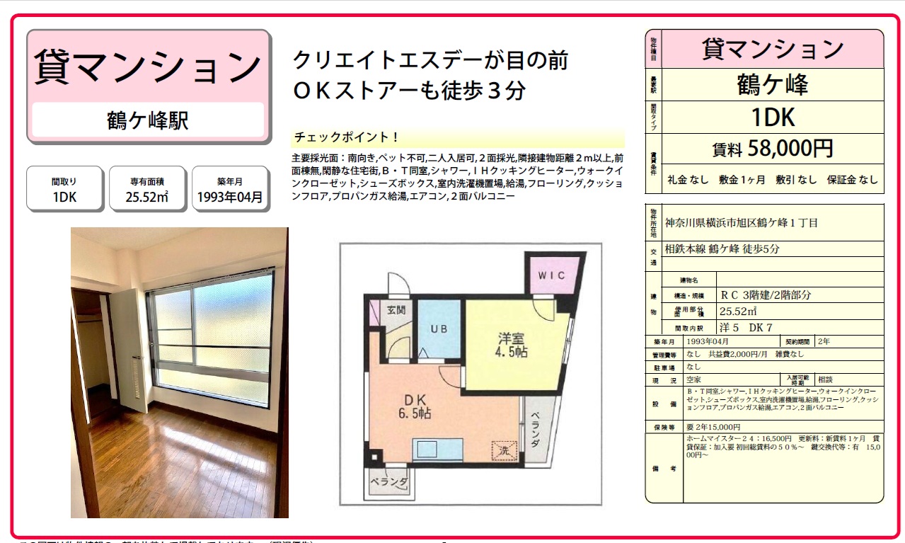 鶴ヶ峰駅徒歩5分 便利で静かなマンション角部屋です。